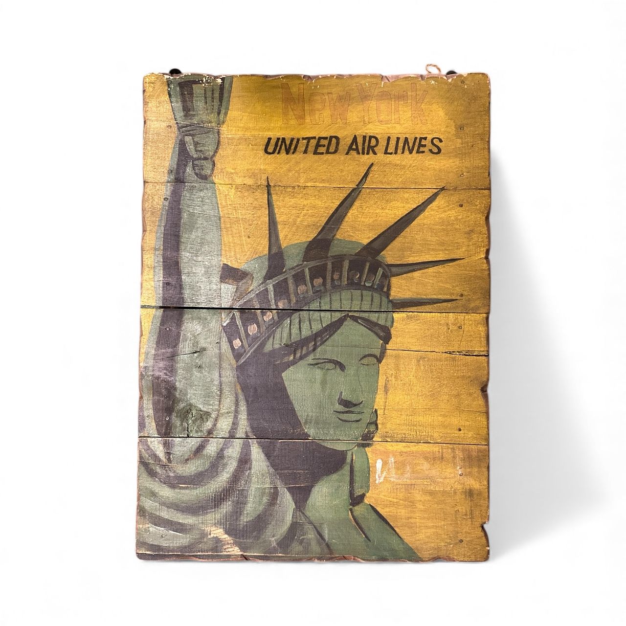Yellow "United Air Lines" Art with Statue Of Liberty