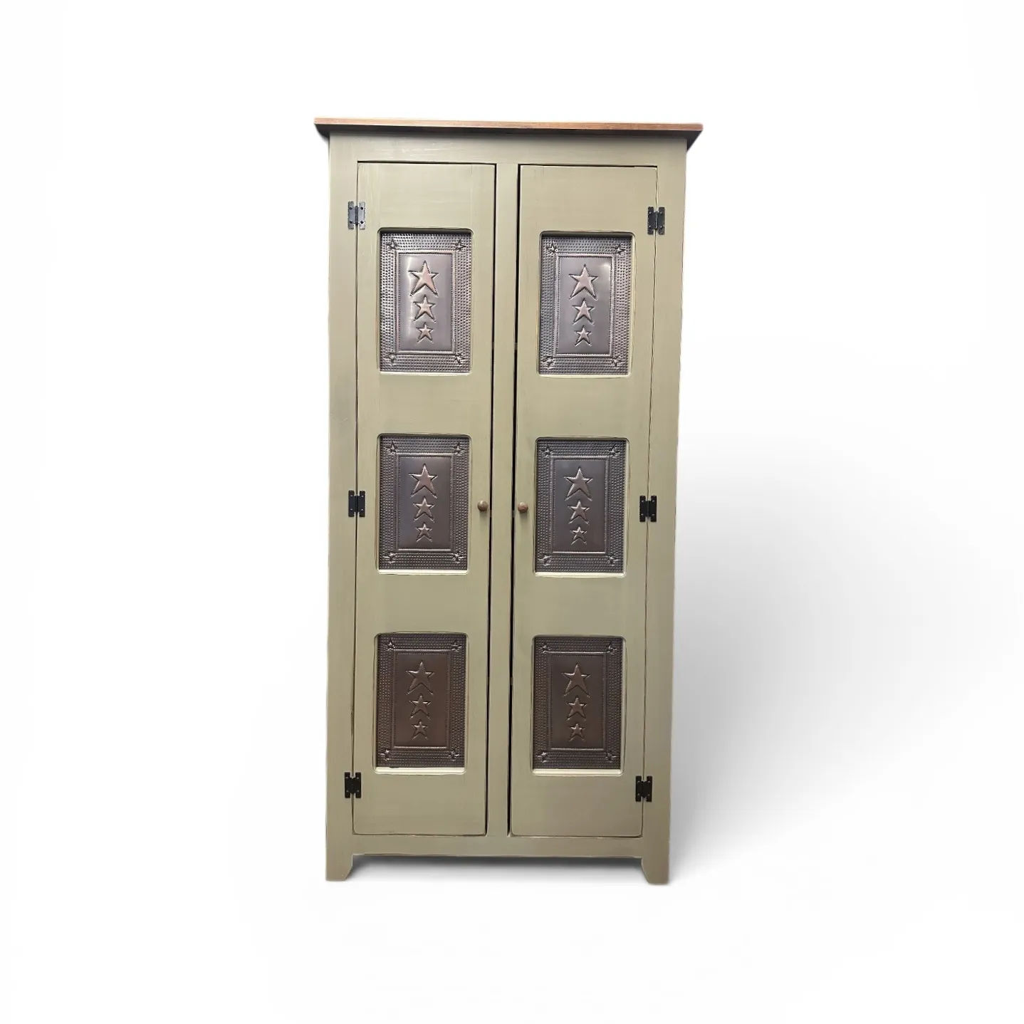 6' Sage and Early Harvest Two-Tone Pie Safe with Tin Star Doors