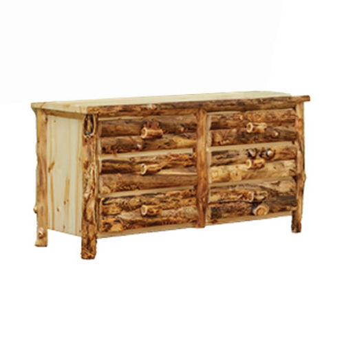 Rustic Log 6 Drawer Dresser with Clear Coat