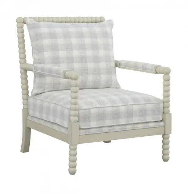 St. Claire Cream Finish Accent Chair with Plaid Seat