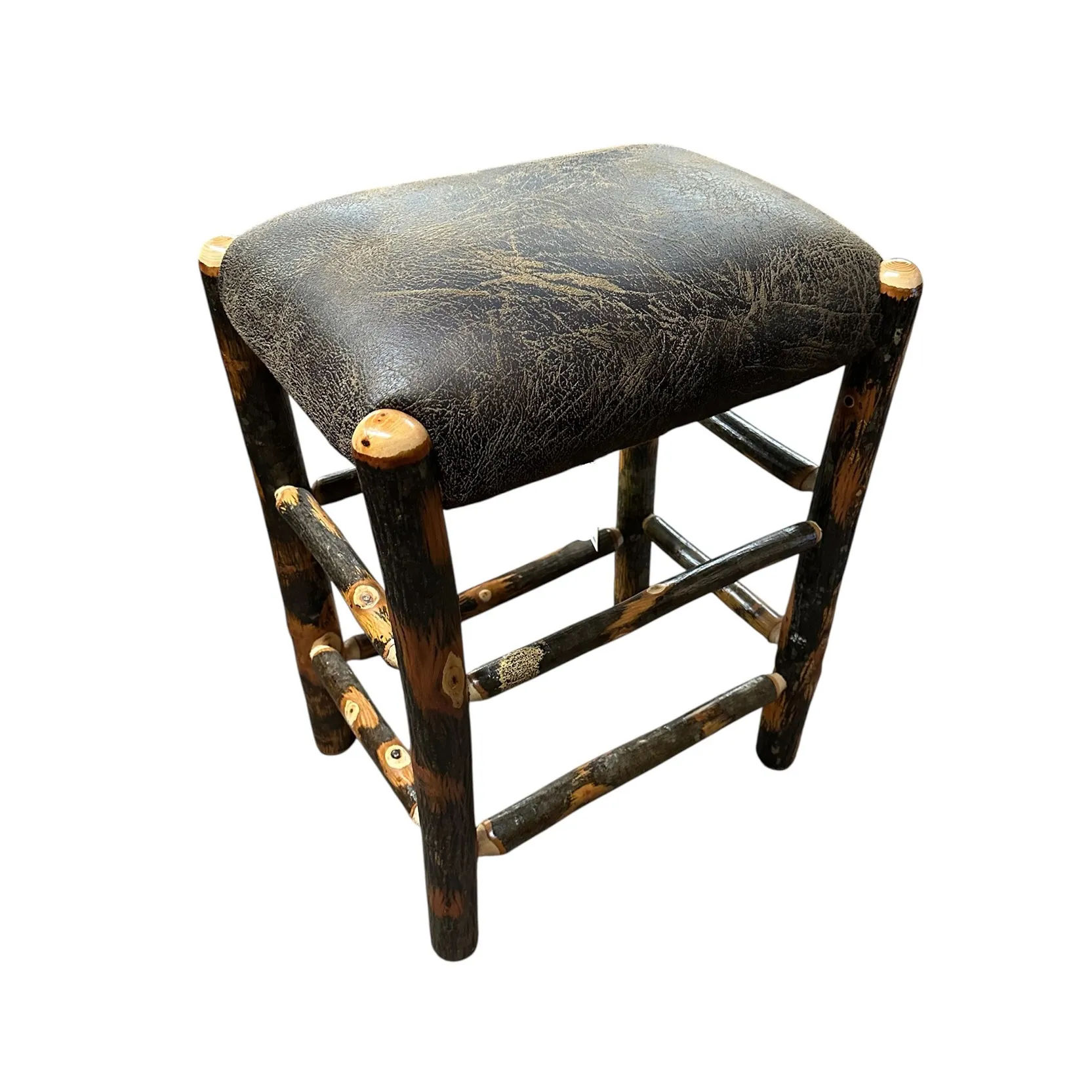 Hickory Log Counter Height Stool with Colt Coffee Leather Upholstery