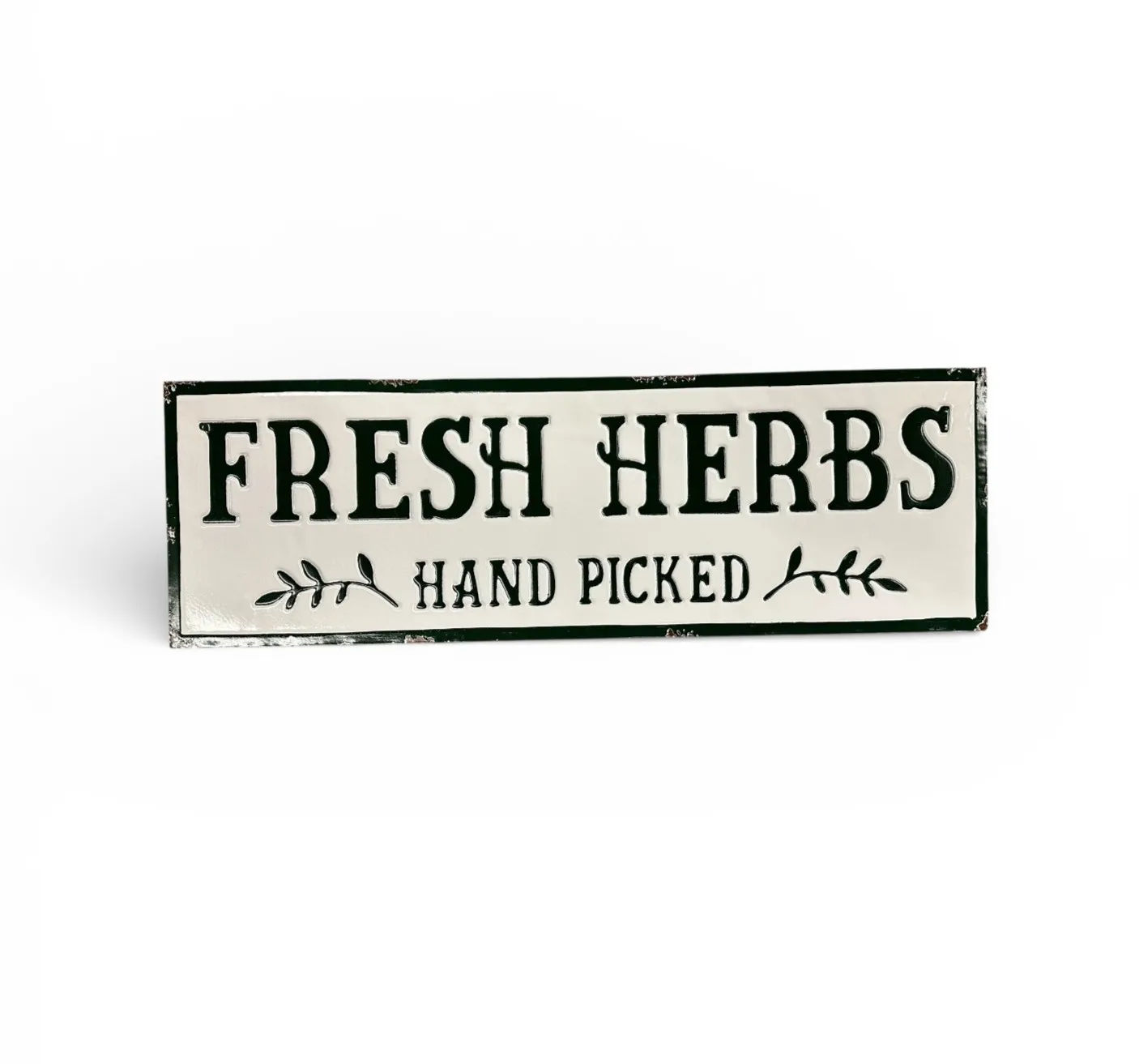 Rustic White Sign "Fresh Herbs Hand Picked"