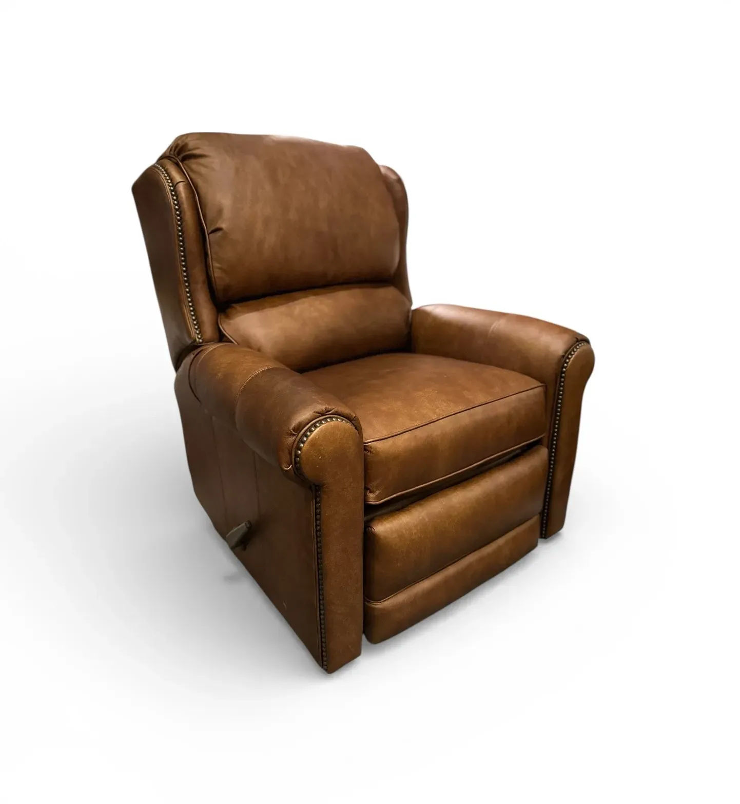 Brown Leather Manual Recliner with Rubbed Bronze Accents