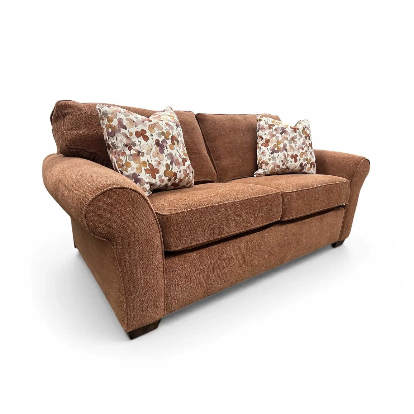 Spice Fabric Loveseat with 2 Hibiscus Fabric Pillows