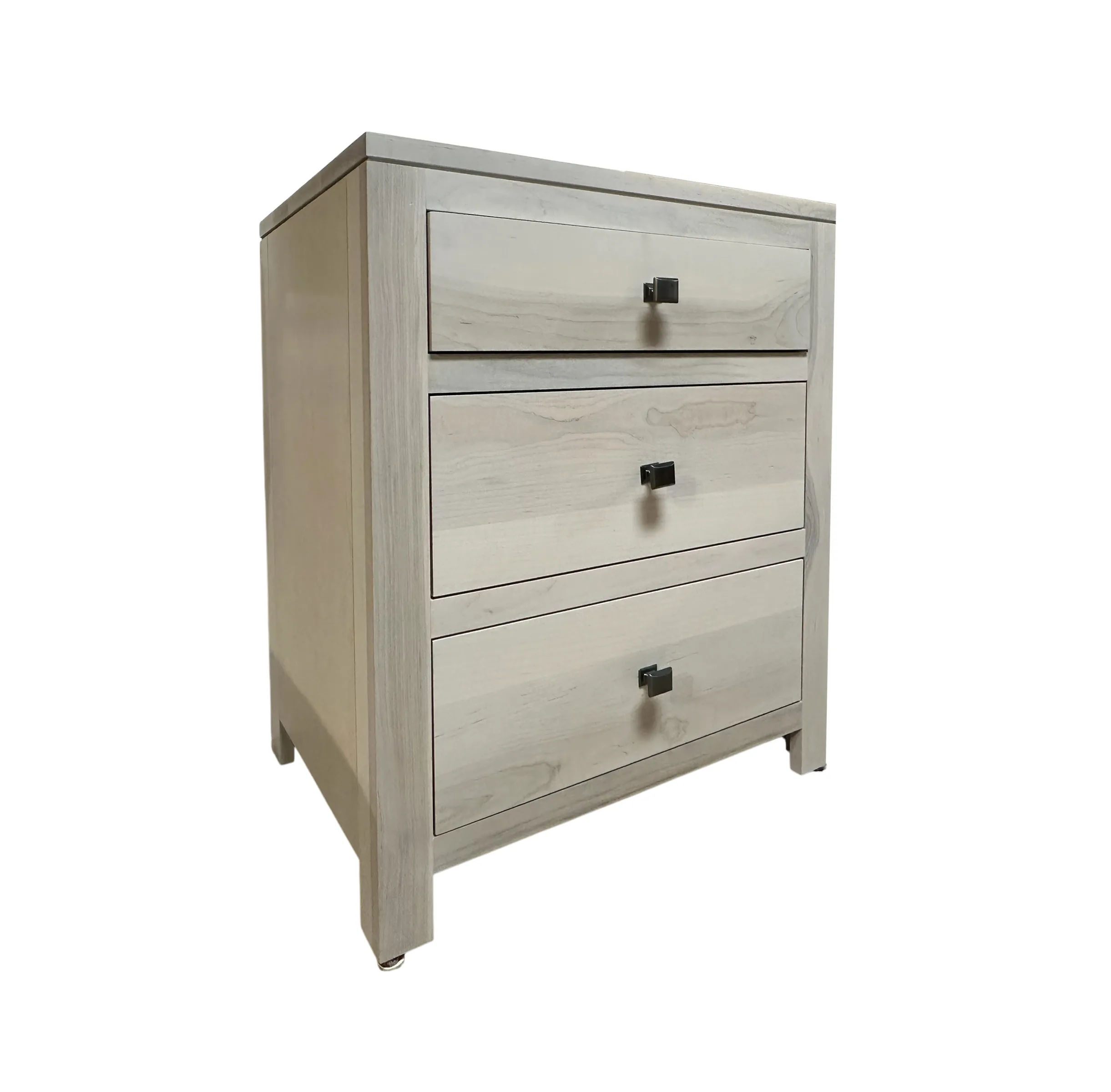 Quartz Finished Maple 3 Drawer Nightstand with Antique Silver Hardware