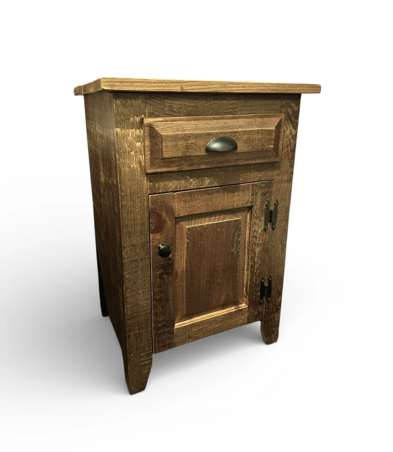 Add a touch of rustic charm to your bedside with our Rustic Stain Nightstand. Proudly made in the USA, this nightstand is crafted from quality wood and finished with a rich, rustic stain that showcases the natural beauty of the grain. Featuring one drawer and one door, it offers convenient storage for bedside essentials while maintaining a clean and timeless look.