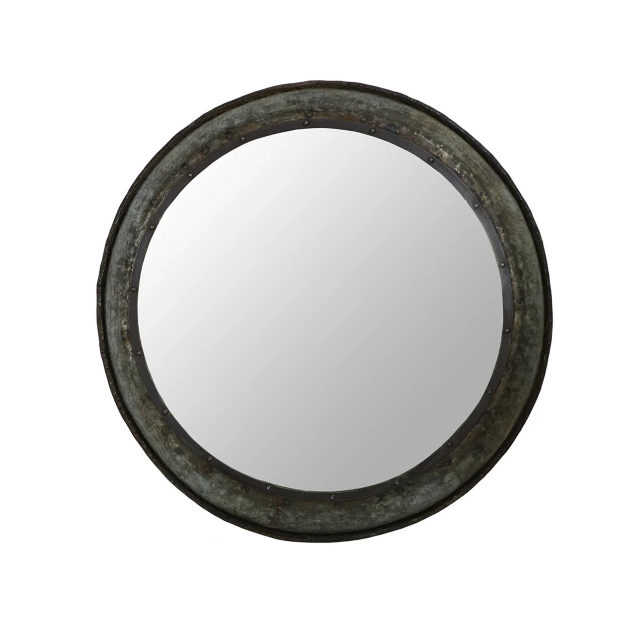 Punctuate a space with the Parat Mirror. The circular frame is crafted from up-cycled vintage iron bowls. The Parat Mirror's frame is lightly textured with a dark gray finish that is bold yet complements most decors.
