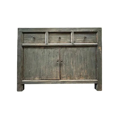 Distressed Patina Reclaimed Wood Cabinet with 3 Drawers and 2 Doors