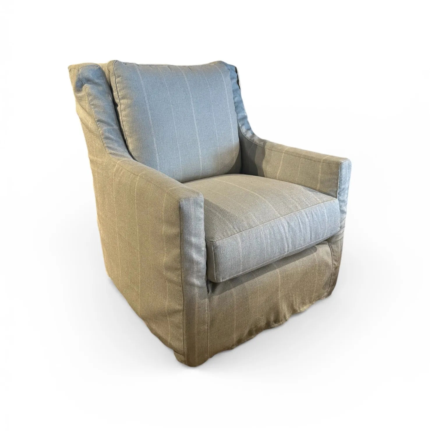 The Lainey Slipcover XL Accent Glider combines smooth 360‑degree swivel motion with gentle, soothing glide for effortless comfort. Its tailored slipcover design pairs with plush feather‑blend or Comfort Chic cushioning to create a relaxed, inviting seat ideal for living spaces or nurseries. Stylish and cozy, it brings easy‑care elegance and everyday comfort to any room.