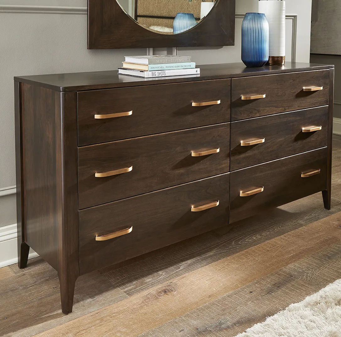 Black Silk Finished Rustic Cherry Dresser with 6 Drawers